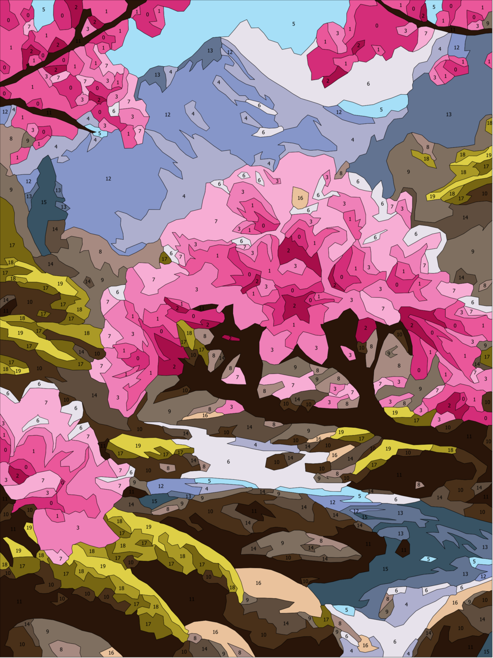 Unleash your inner artist with the vector file for this intricate color-by-number illustration. The vector format ensures sharp, clean lines at any scale, so you can print the design on any paper size without losing detail or clarity.